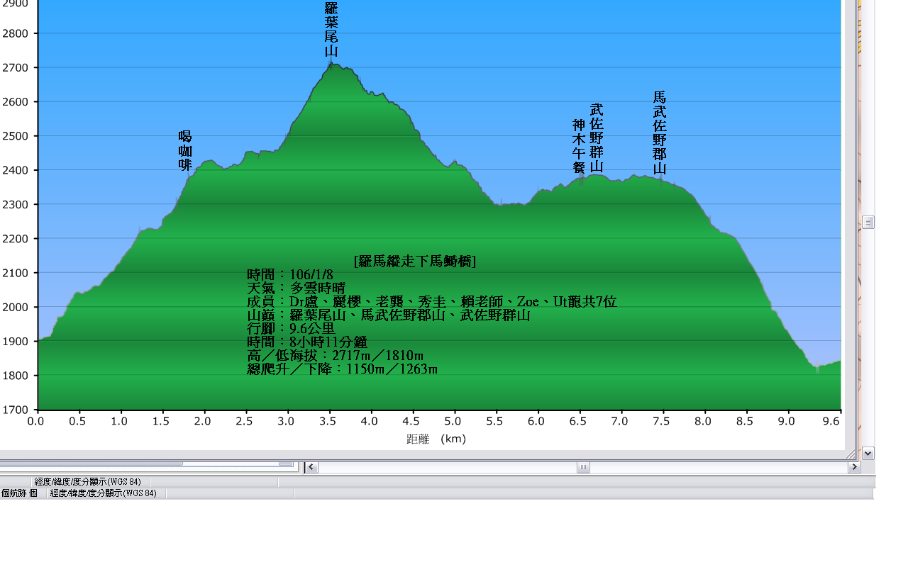 GPS 航跡檔 Gpx 檔 2017年羅馬縱走下馬鰣橋. 羅馬縱走指羅葉尾山至馬武佐野郡山間的一條山稜縱走防火線行程位於台中市和平鄉與宜蘭縣大同鄉的交界處登山口位於台 7 甲約 456k 處 梨山往宜蘭的公路 由已廢棄的思源派出所鐵柵門處出發全程陡上約 700m 經羅葉尾山武佐野群山與馬武佐野郡山等三座山頭後下切回台 7 甲約 50k 處的馬鰣橋出入口相距 45k 最好有接駁車否則累了一天還得踢 5k 的. 說明鄉道說明notes2 待製 敘述ciq鄉道說明desc.