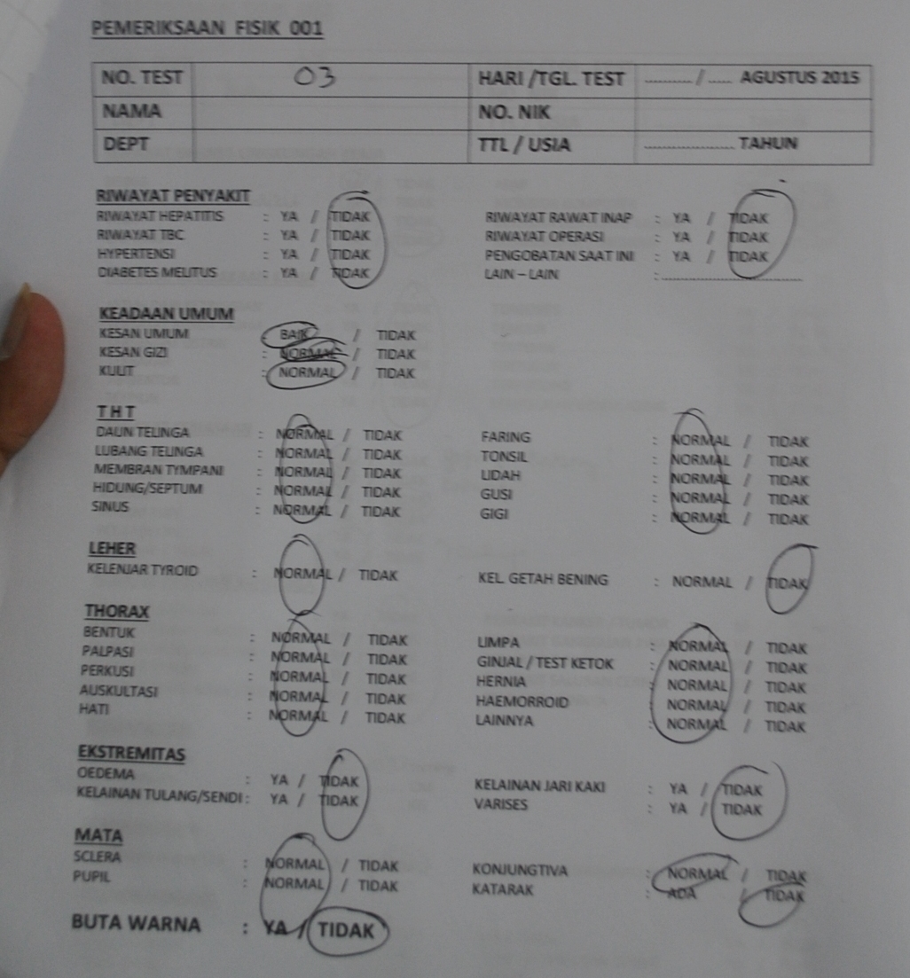 Ketika selesai tes HRD berkata pengumuman 2 hari kemudian faktanya pengumuman keluar pada 2 minggu kemudian. PENGUMUMAN HASIL SELEKSI TAHAP IV TES KESEHATAN LABORATORIUM REKRUT EKSTERNAL UNTUK POLSUSKA TINGKAT SLTA TAHUN 2012 DI LINGKUNGAN PT. Cek tinggi dan berat badan.